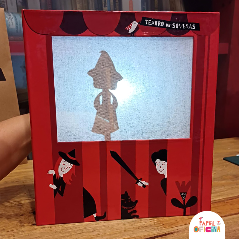 O teatro é produzido em papel revestido e tecido. Acompanha: