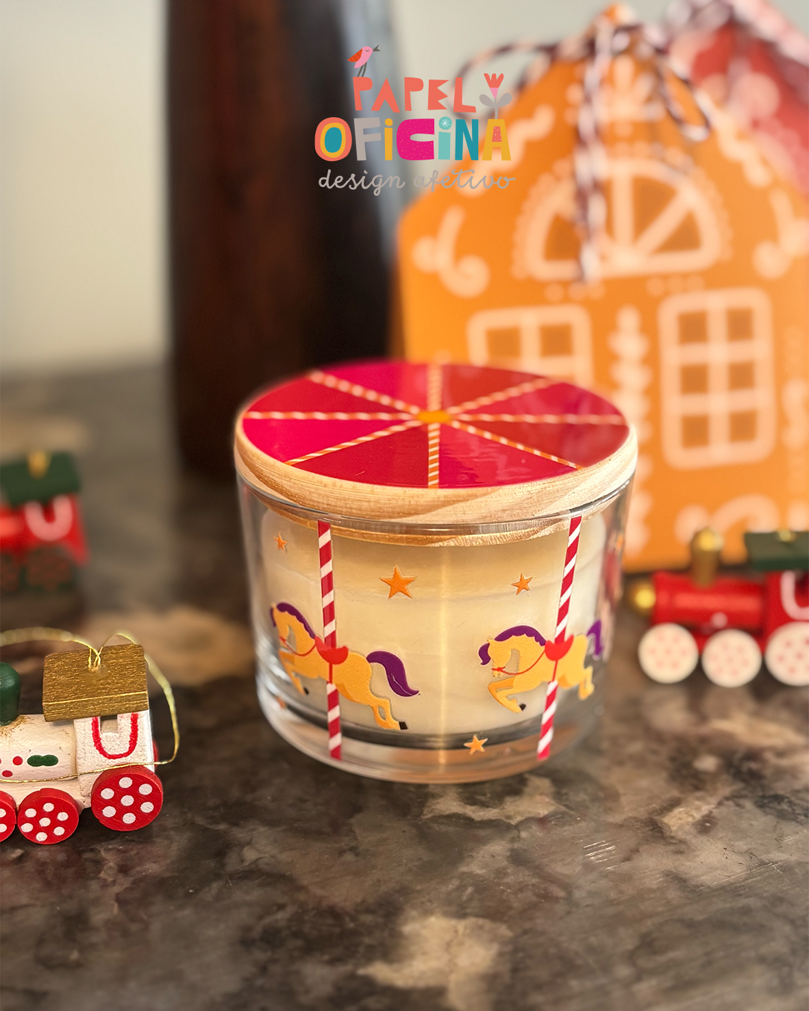 Feita em pote de vidro, 150 ml, com tampa em madeira.